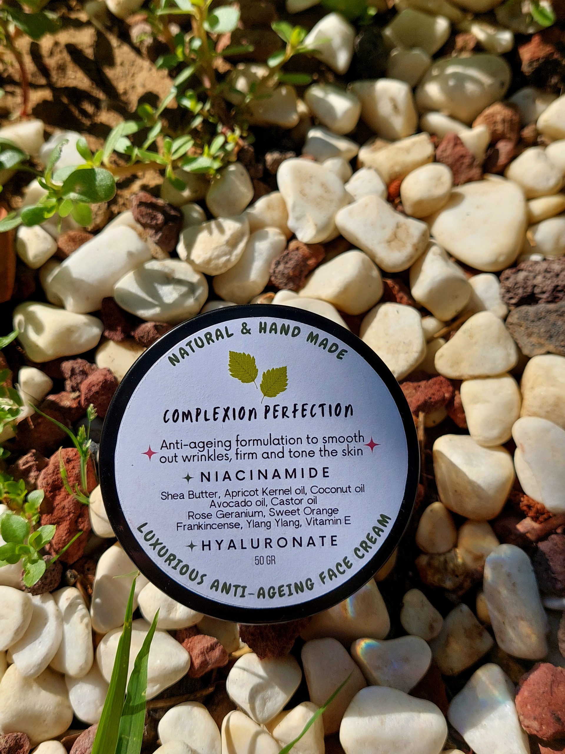 Hello! I’m Leman, the face and hands behind Handmade Natural Skincare and the creator and formulator of Complexion Perfection – a hand-made, natural anti-ageing cream. For the past 15 years, I’ve been passionately developing this special formula, achieving a synergy where science and nature meet in perfect harmony.
